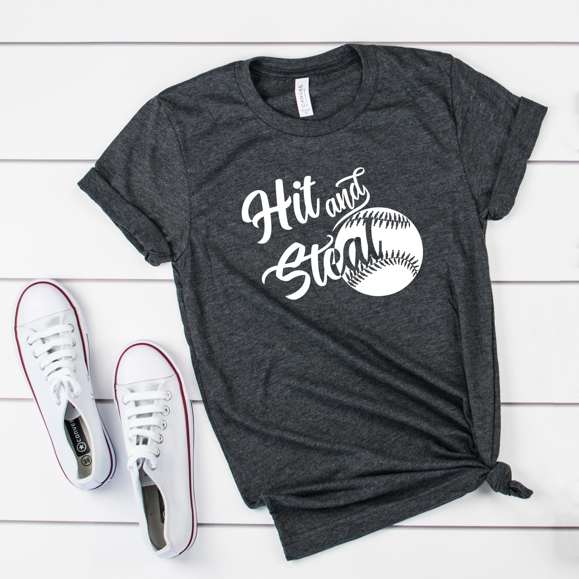 Introducing the Hit & Steal Baseball Tee: the must-have for any Baseball Mom who wants to feel the soft, cozy comfort of a Bella + Canvas tee while cheering on her star player! An ideal way to show your team spirit, this super soft tee is perfect for a day at the game or just hanging around the house. Let's play ball!