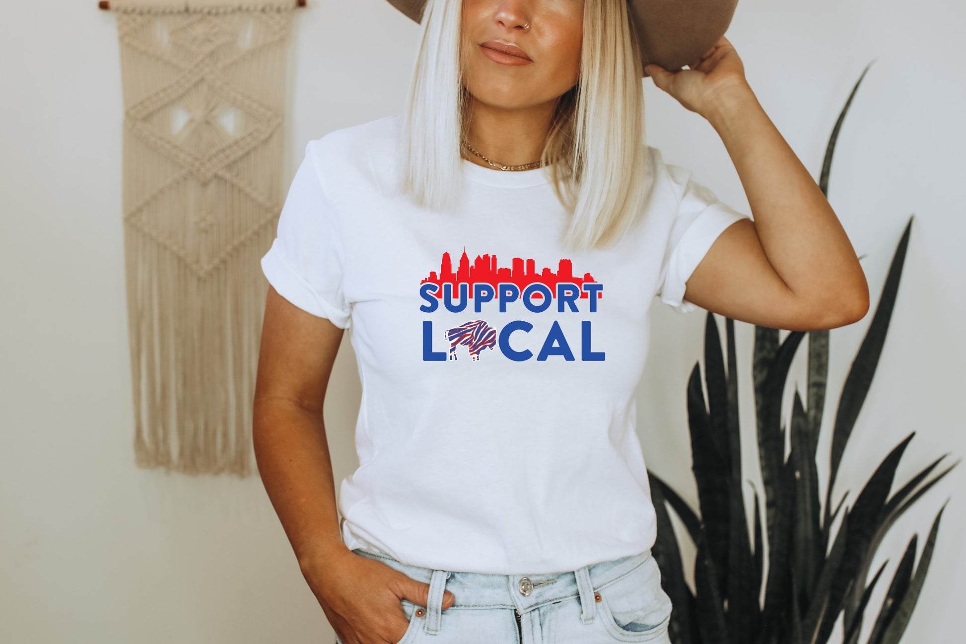 Be a proud Buffalonian in this Shop Local Buffalo Tee! Show off your Buffalo pride while keeping it local with this stylish crop top that features a cool skyline design! This tee is the perfect way to rock your city's love while looking your best. Keep it local!